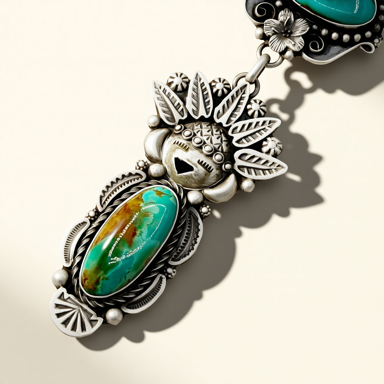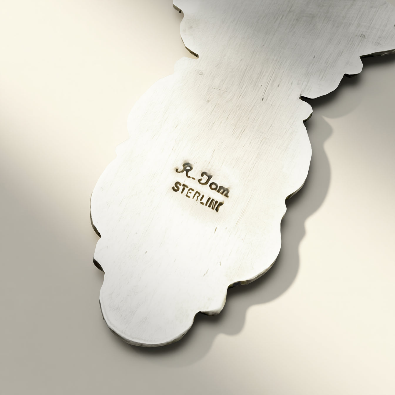Handcrafted by Ronald Tom, this sterling silver necklace measures 24 inches. Native made.